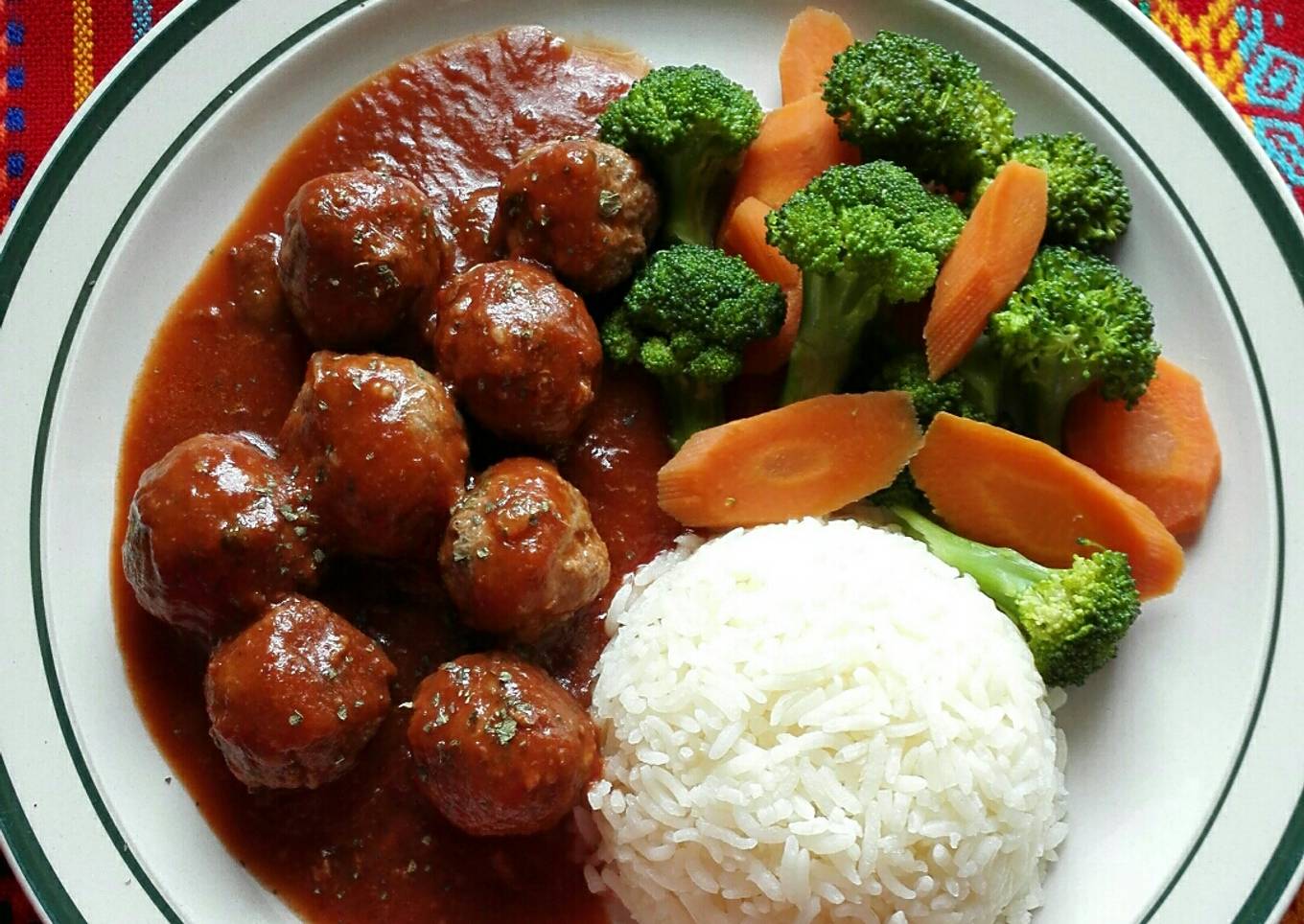 Haciendo los honores al chipotle con unas deliciosas albóndigas.