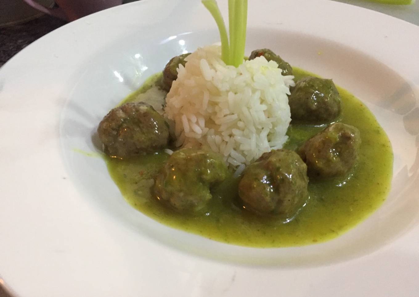 - Retira las albóndigas de la sartén cuando estén cocidas incorpora el cebollín y el agua curry y rectifica la sal luego lleva la mezcla a la licuadora agrega la fécula de maíz procesa y agrégala nuevamente a la sartén incorpora las albóndigas y déjala cocinar hasta que la salsa comience a hervir removiendo constantemente y a degustar ! la puedes acompañar con arroz blanco