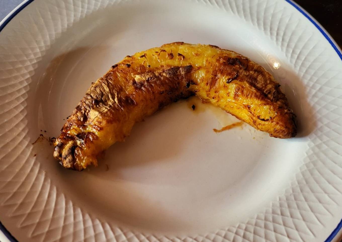 A los 5 minutos das la vuelta al plátano. - Listo y delicioso. Tardas más pero no ensucias ni trabajas con tanto aceite en un sartén.